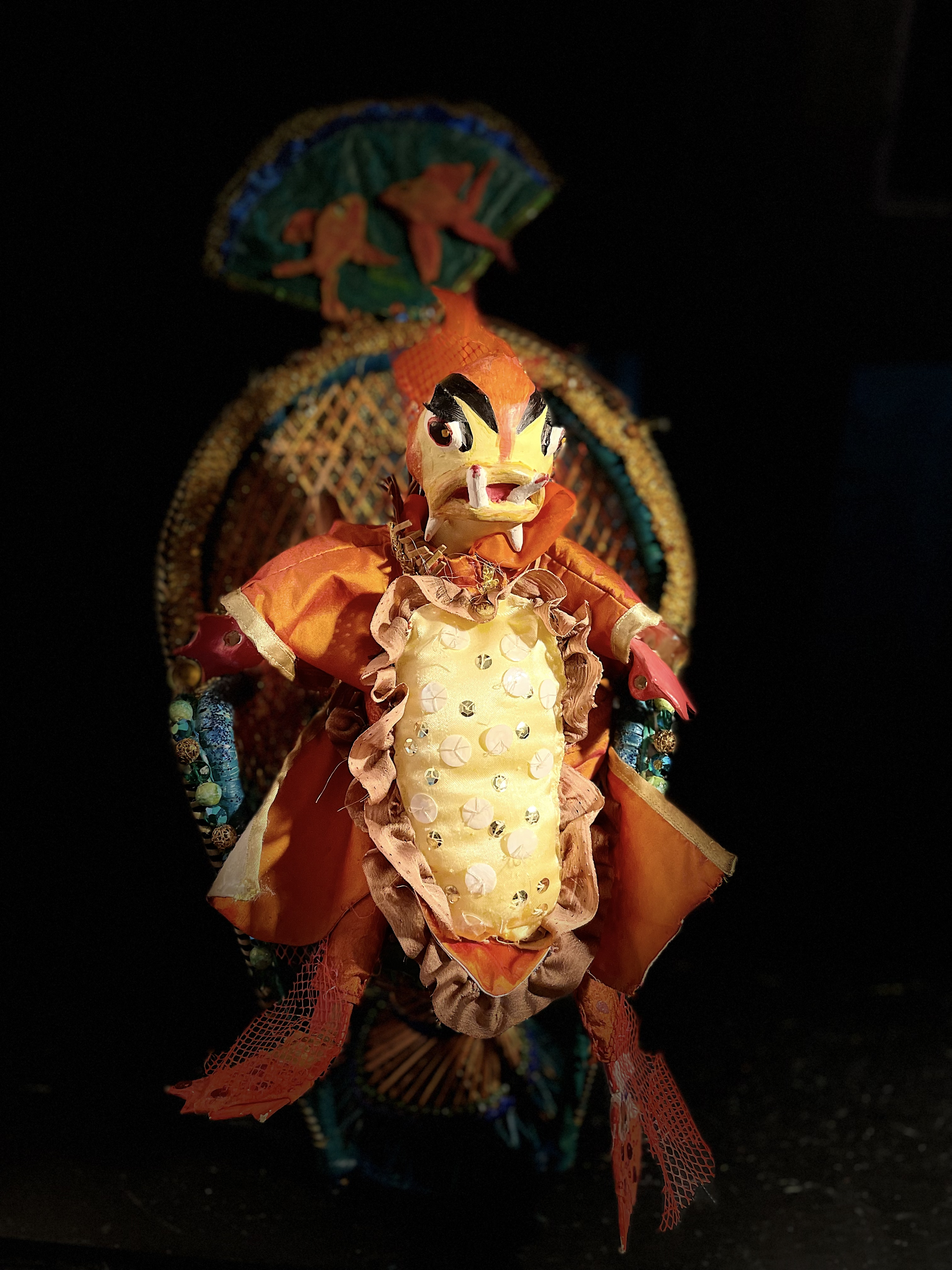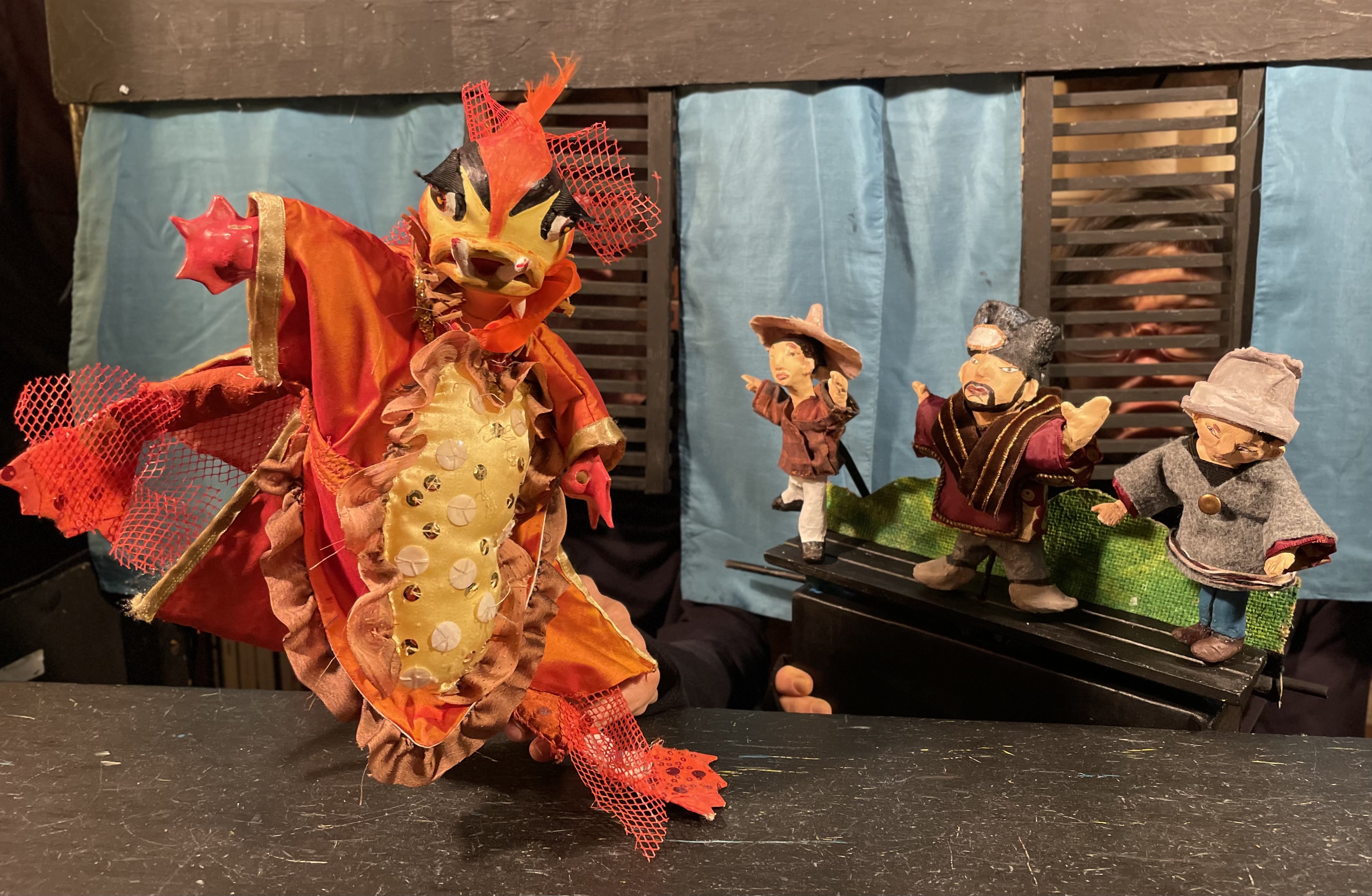 Journeying to India, Monk Tang and his disciples Monkey, Pig, and Sha-jing have just found a quiet temple to rest in when they learn that a powerful river monster has been demanding all the food in the area, year after year. Searching for the surprising secret of the monster’s formidable power takes the disciples over the Ice River, down to its bottom, and up to the heavens. Madeleine Beresford and Margaret Moody use traditional Bu Dai Xi puppets and choreography in their lively presentation of this episode from the classic Chinese tale Journey to the West. Accompanied by original music. Recommended for ages 5 and up.